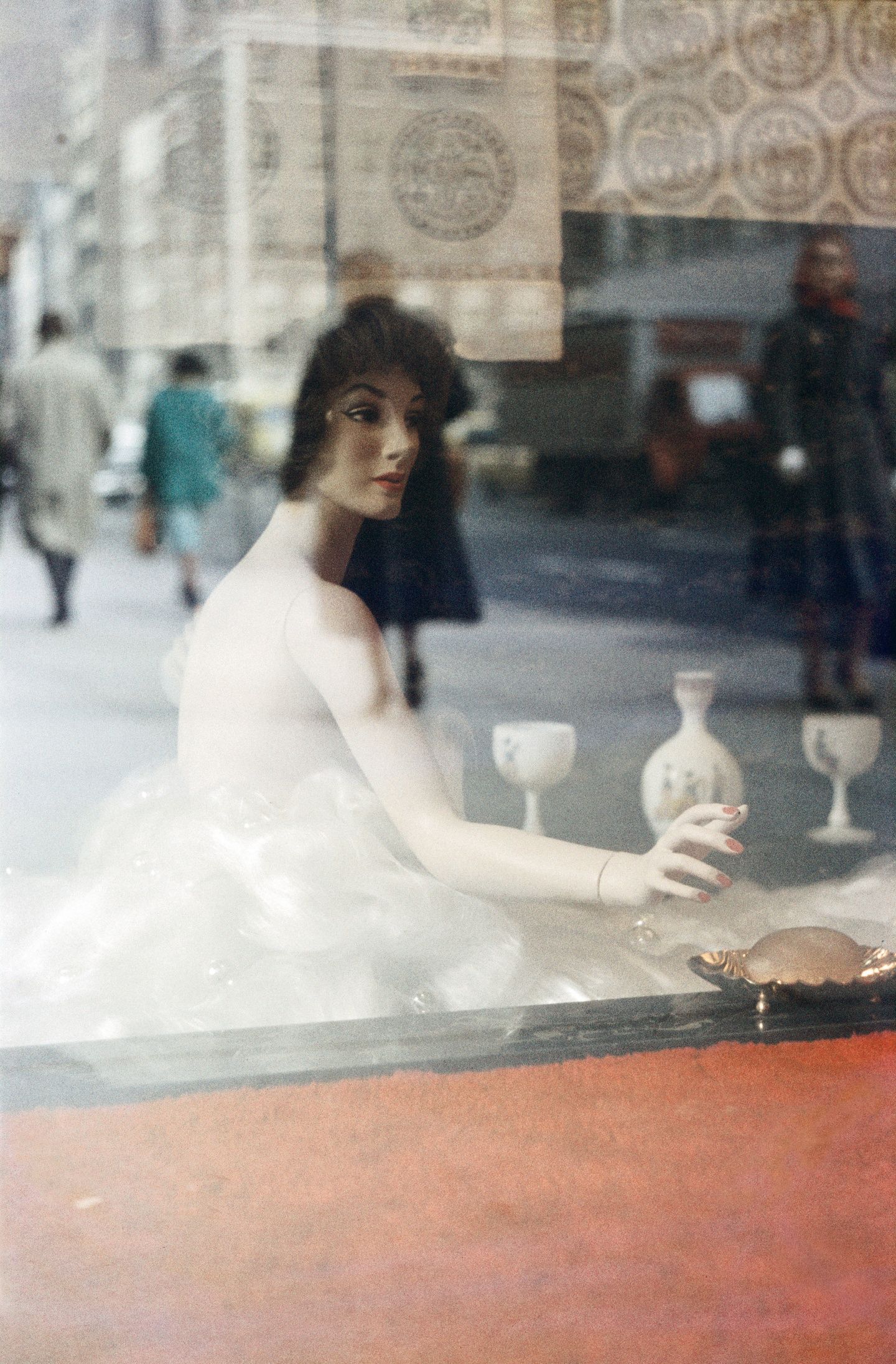 Saul Leiter vécut plus de 60 ans dans le Lower East Side à New York. Ses photos, souvent prises en se promenant dans son quartier, ne semblent jamais datées. Des années 1950 aux années 2000, elles sont habitées de cette audace discrète montrant le devant de la vitre et ce qu’elle laisse entrevoir. Leiter portait un regard de peintre sur les moments furtifs et intimes du quotidien. Avec une conscience aigüe du caractère transitoire de la beauté, il a conçu une poésie de l’éphémère qui confine au sublime.