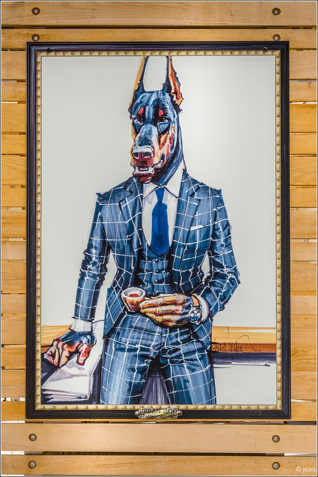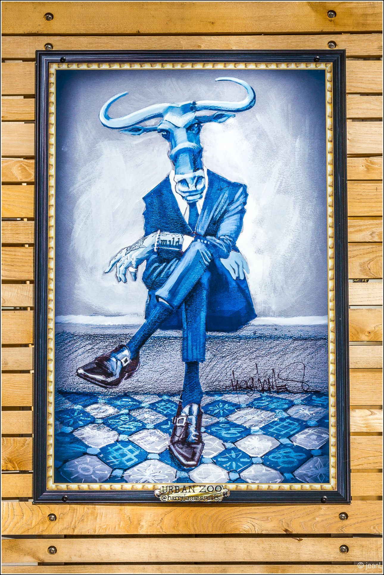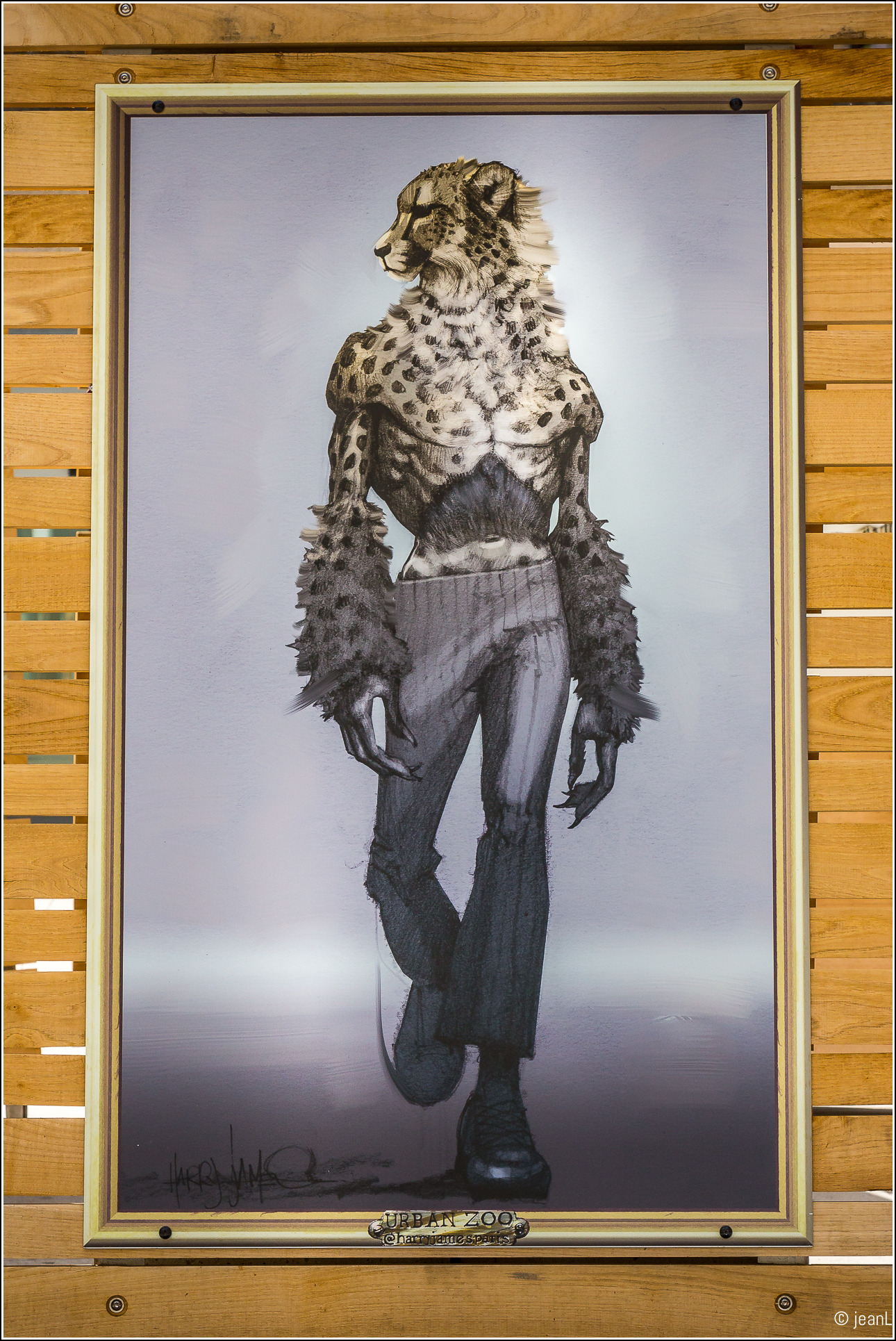 « Fasciné par le règne animal, je m’interroge sur le rôle de l’Homme dans l’écosystème. C’est à travers cette réflexion, que je dessine l’être humain, pour qui l’expansion de l’espèce est constante, même à un animal, pour qui l’existence de l’espèce est parfois menacée. Ces personnages de zoanthropies ont un style vestimentaire urbain, mais leur allure trahit une certaine animalité, s’en dégage une forme de conscience animalière. L’homme devient l’animal social et politique. » Harry James