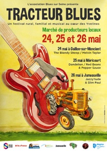 Pendant trois jours du 24 au 26 mai, le Tracteur Blues promène sa scène ambulante dans trois villages des Yvelines pour des concerts gratuits de pointures du Rock et du Blues.